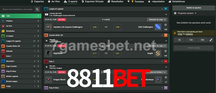 O 8811Bet oferece uma grande seleção de opções de apostas em e-sports com probabilidades competitivas